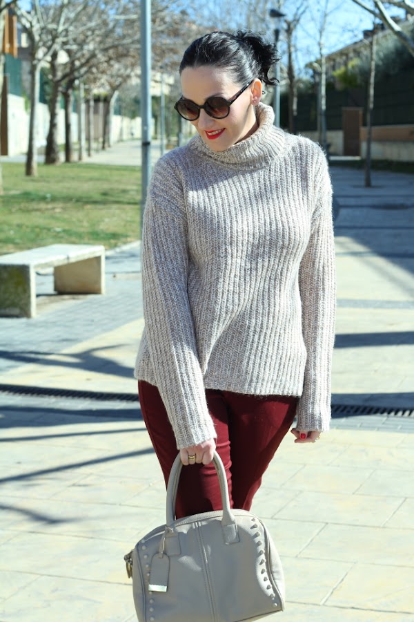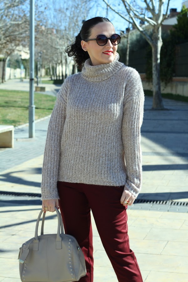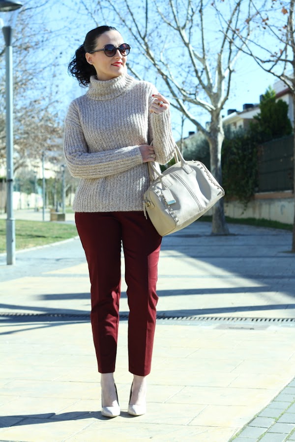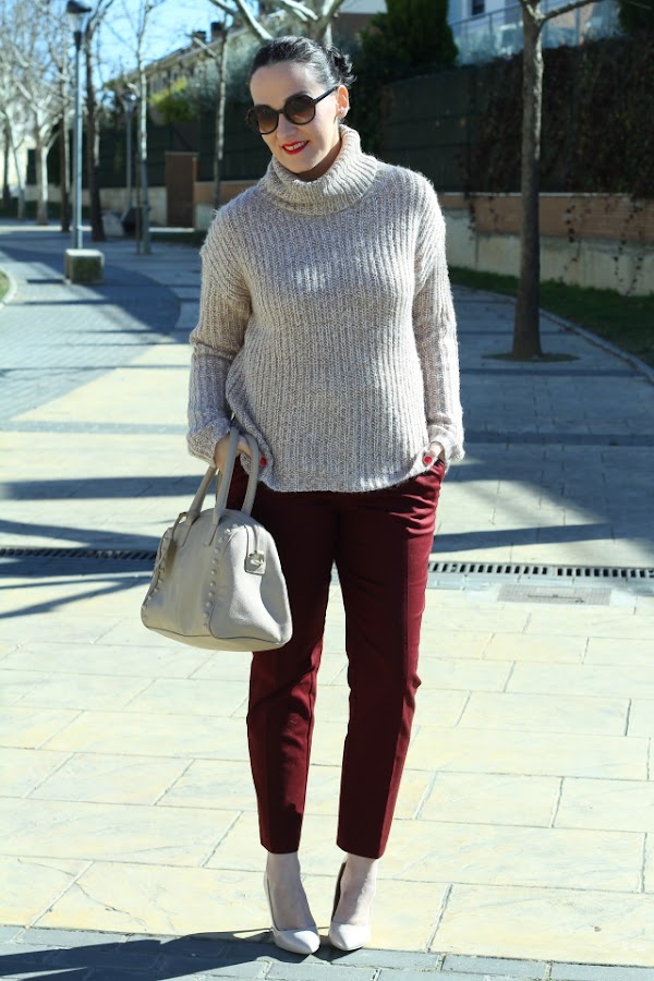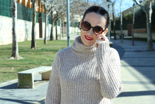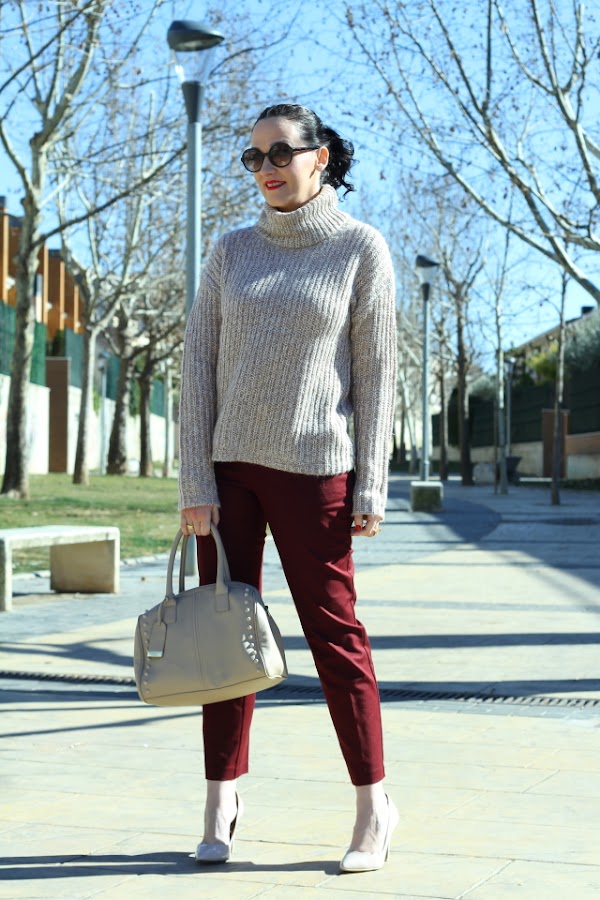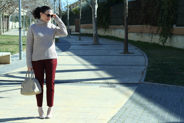 Este outfit es el que elegí el domingo para salir a dar una vuelta con mi chico antes de ir a comer a casa de la familia. Como me encontraba pachuchilla por el resfriado me decanté por un look confortable y calentito con jersey de punto, pantalones capri, stilettos nude y el pelo recogido en coleta. Suerte que las fotos las hicimos pronto porque conforme pasó el tiempo mi malestar fue creciendo, así que decidimos terminar antes nuestro paseo e ir directos a casa de la familia. Debido al malestar opté por pasar antes por casa y cambiar los zapatos por mis nuevas sneakers para ir lo más cómoda posible, como ya visteis en mis redes sociales.