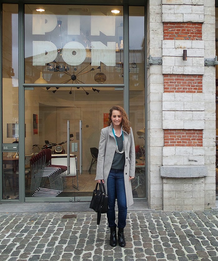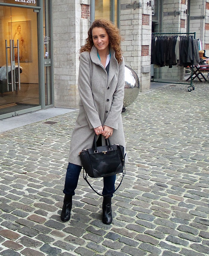 What do you think about long coats? I think they give a sophisticated and elegant touch to a basic look.Today I show you the pictures we took this weekend in the center of Brussels, as key items I"m wearing a long grey coat and my new turquoise and argent necklace that gives a touch of color to the look, it was a gift from Christmas, Thank you Papa Noel , I love it!