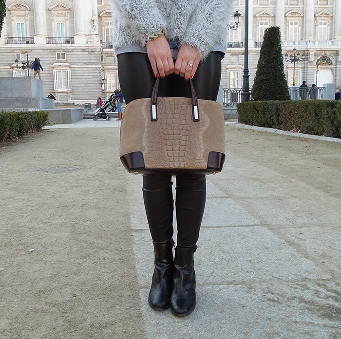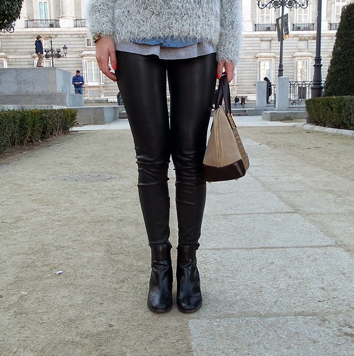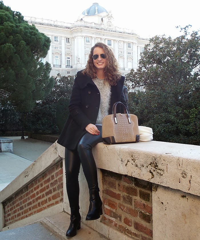 Today I show you a perfect outfit to walk around Madrid in a sunny but cold afternoon.As a key pieces for the look my black leather pants and my new bag in beige shade.