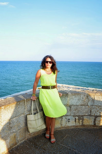 ¿Qué os pareció el post sobre Peñiscola? Sé que había muchas fotos y tal vez se os hizo pesado, pero no os podéis imaginar la de rincones que hay para hacerse fotos. Hoy os propongo un look casual y cómodo, ideal para hacer turismo y grandes caminatas pero sin dejar de lado el estilo. Para salir a hacer fotos y disfrutar de la ciudad elegí un vestido de gasa con un poco de cola en color amarillo. Adoro este color para el verano ya que resalta nuestro bronceado. Para que el vestido no pareciera un saco (se me ha quedado un poco grande) opté por ponerme un cinturón ancho a la cintura. ¿Qué os parece este outfit?