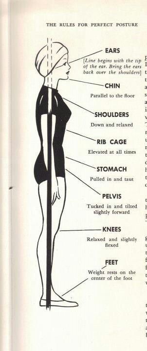 Otra imagen que puede ayudarte a saber cómo es la postura correcta es esta que he encontrado en el tablero de Pinterest de Modern Retro Woman: