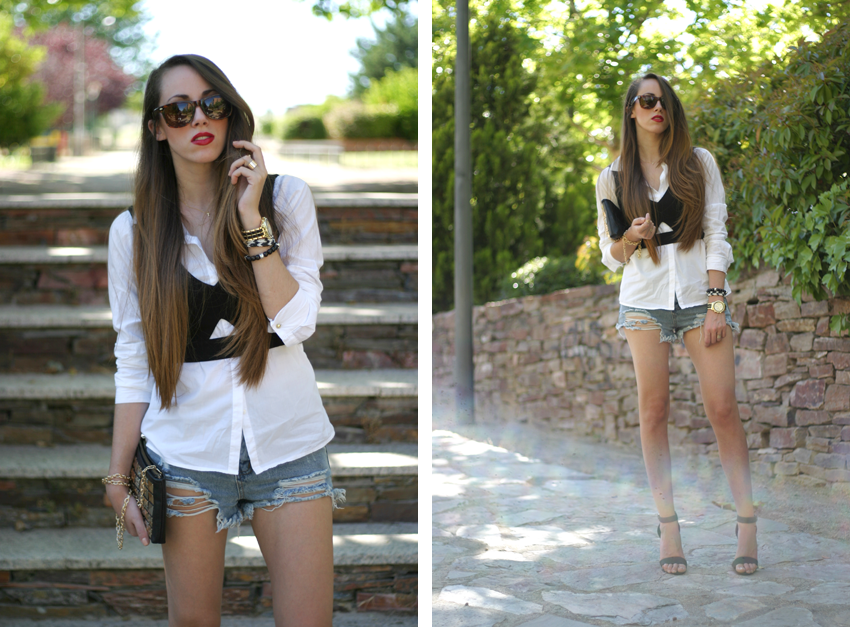 Today I show you a pretty basic outfit. I have already said that I like to give several applications to crop tops. Overlay this pledge on others is a very good option to create different looks. Before leaving home I thought to combine it with jeans or black long pants but it was very hot so we finally chose the shorts.