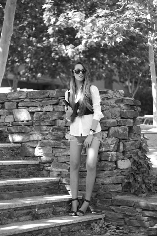 I"m wearing: Crop top - Front row shop(SS14)HERE/AQUI, Shirt/Camisa - Pull&Bear(Old), Shorts - Lovely whole sale(SS14)HERE/AQUI, Bag/Bolso - Blanco(FW13-14), Sandals/Sandalias - Primark(SS14).