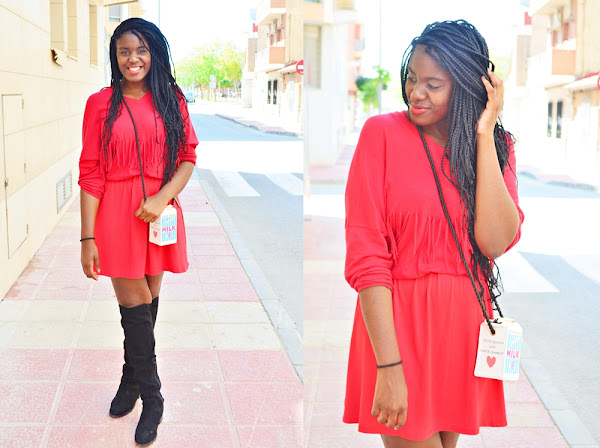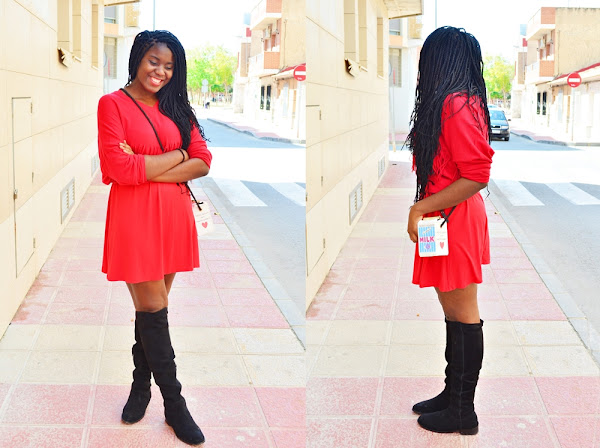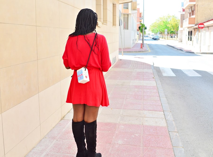 Me encanta superponer prendas y más si son del mismo color, en este caso me quedo un look monocromo, compuesto por un jersey que ya os enseñé por aquí y este vestido que tantas veces he combinado. Para completar el outfit mi bolso de leche y mis queridas botas altas.