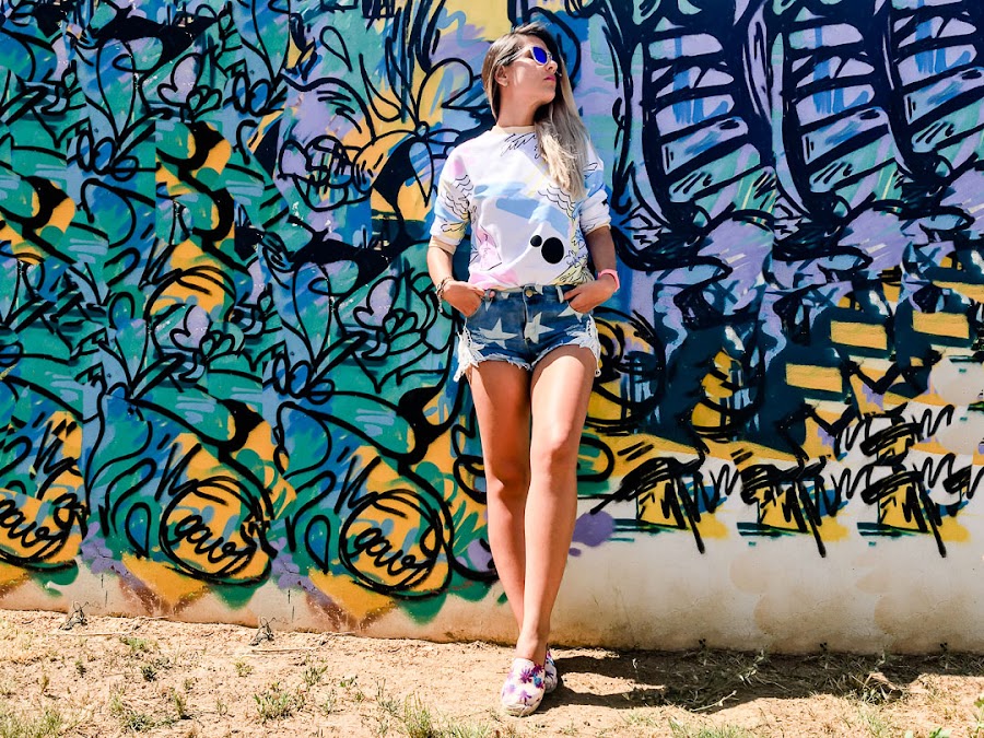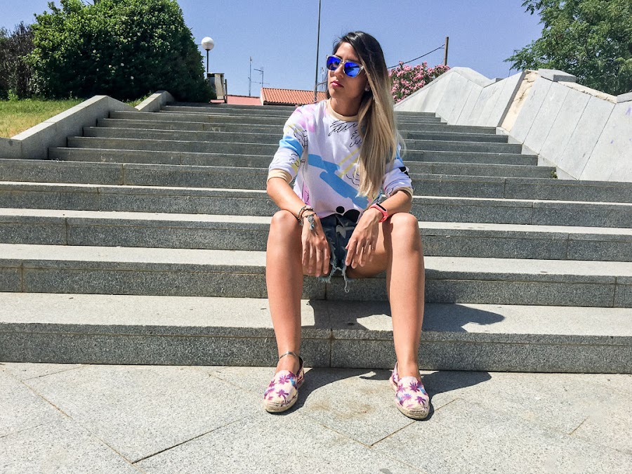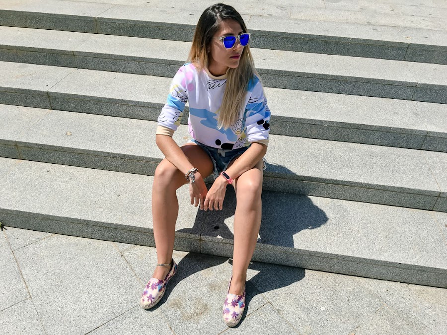 Todays look has a style with a surfing touch, or at least reminds me of surfers looks, where you can not miss a sweatshirt as colorful as mine. It is of VIPME, and I love it mainly because of that, for its colors so happy and its stamping so summer. It is true that now it is very hot to wear a sweatshirt, but it comes great for those long summer nights in which it seems to refresh a little.