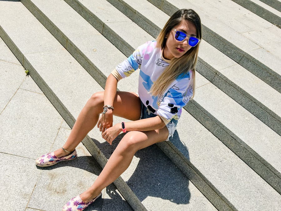 El look de hoy tiene un estilo con un toque surfero, o por lo menos a mi me recuerda a los looks surferos, donde no puede faltar una sudadera tan colorida como la mía. Es de VIPME, y me encanta sobre todo por eso, por sus colores tan alegres y su estampado tan veraniego. Es cierto que ahora hace muchísimo calor para llevar sudadera, pero viene genial para esas noches largas de verano en las que parece refrescar un poquito.