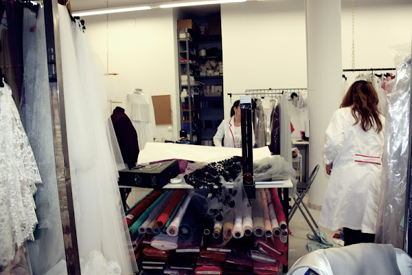 Rodeada de sedas, muselinas, encajes y numerosos tejidos espectaculares pude disfrutar de algunas de sus colecciones como Havel su última colección que deja entrever la dedicación y esmero que dedica en cada puntada.
