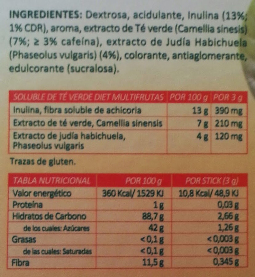 Yo he probado la versión Diet que contiene té verde y judía habichuela y tiene sabor multifrutas. Pero También se puede encontrar en las versiones Fibra, Energía y Belleza con otros componentes y sabores.