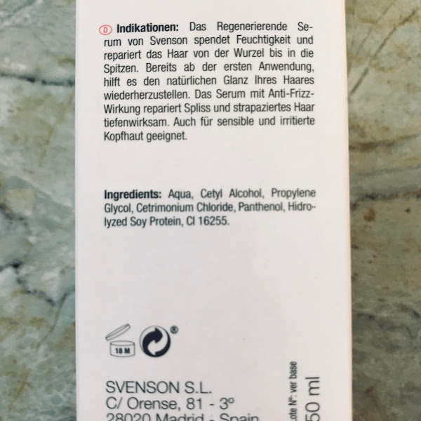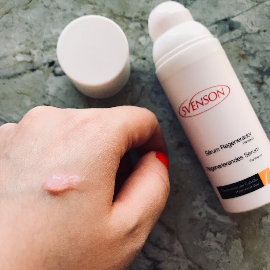 Arantxa Adeva (responsable Svenson Valladolid) me recomendó un par de productos los cuales uno de ellos es este sérum regenerador para reparar el cabello dañado, además de aliviar la irritacion del cuero cabelludo sensible.