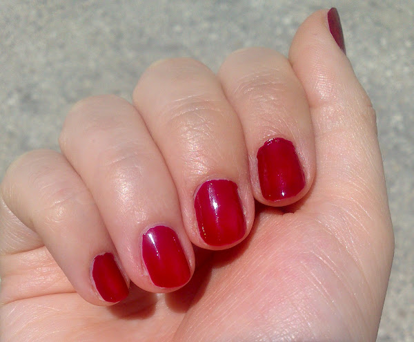 Esa foto es del mismo dia que me las pinté. Solamente me di una capa y cubre bastante bien y, como podéis ver, tiene un brillo ideal (recordad que no lleva ningún Top Coat). El pincel es gordito, así que es muy facil de aplicar. Por lo que por ahora, tengo que deciros que no tengo ninguna queja :3