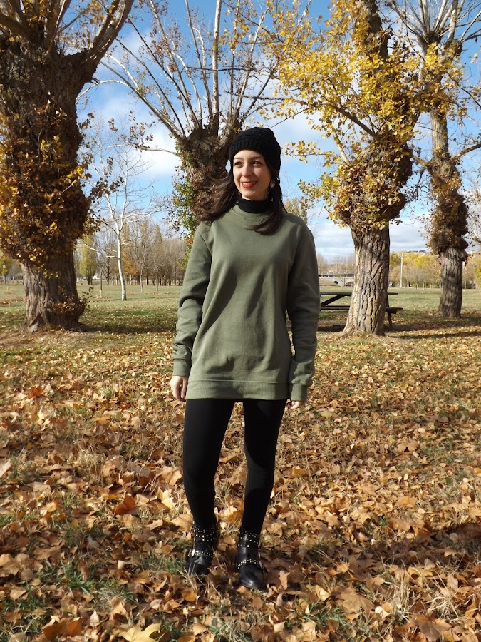 Para estos días de invierno lo que más apetece es ir abrigadita y eso mismo es lo que hice este día. Sudadera, leggins, botines y gorrito.