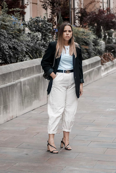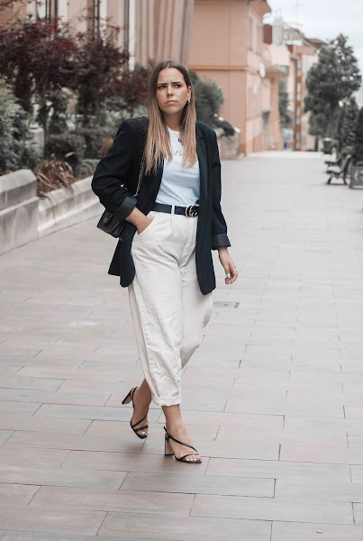 Ya os había contado mi amor por los pantalones slouchy y sigue presente. Me parece que son super estilosos y muy fáciles de combinar ya sean con looks mas simples o mas arreglados. En esta ocasión quise hacer un mix de ambos y combinar mis slouchy favoritos con blazer oversize, sandalias de tacón y camiseta básica para que fuera mas desenfadado.