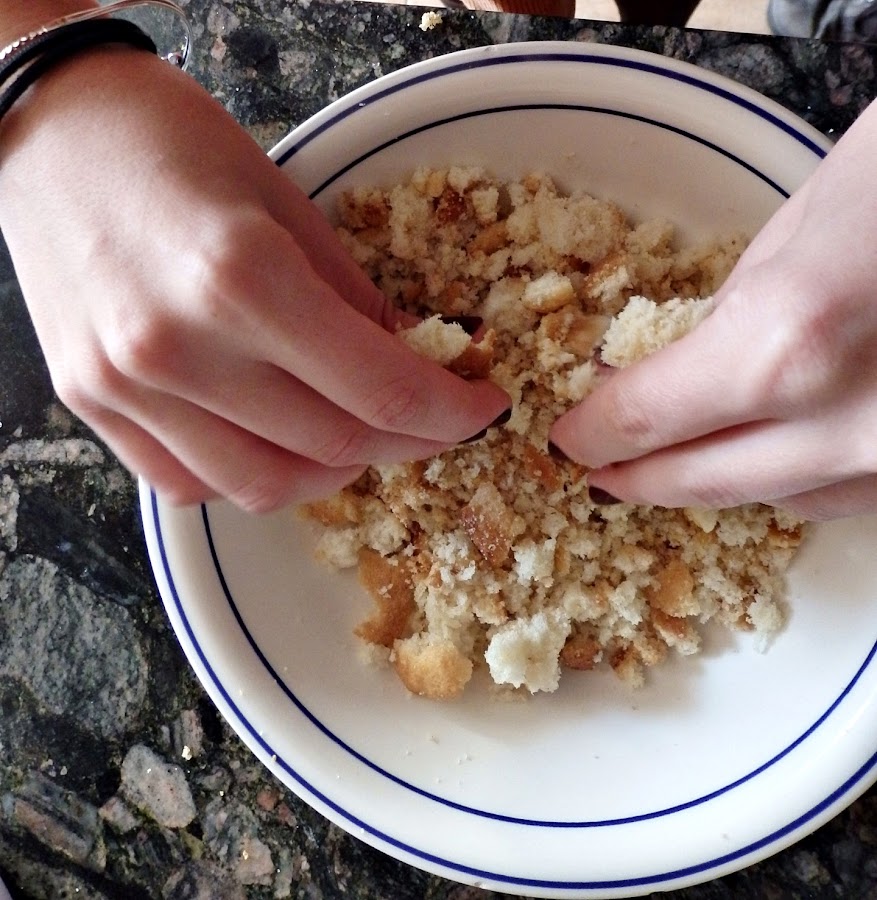 Lo primero es deshacer todas las magdalenas, no hace falta que estén demasiado desmigadas, de hecho es preferible que los trozos sean desiguales para que luego la masa sea más compacta.