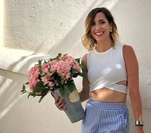 Para la ocasión elegí mis pantalones culottes de rayas marineras de Primark, un crop top blanco cruzado de Stradivarius y unas sandalias de Mango.