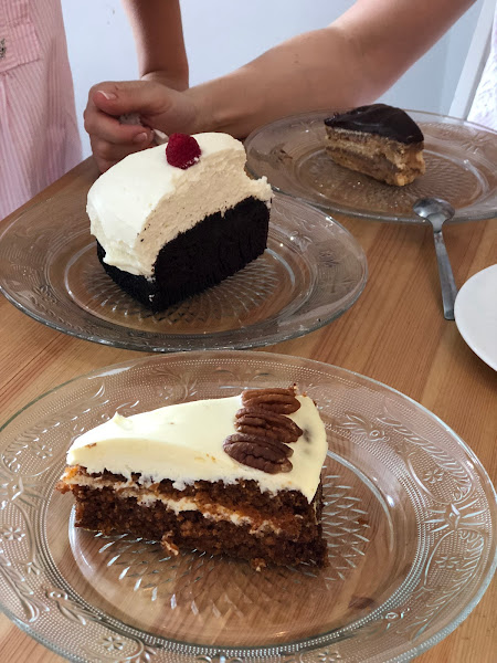 Pasamos una tarde genial en un sitio precioso, reímos mucho y tomamos tarta de zanahoria, de cerveza Guinness, de queso, de chocolate y galleta, de nutella de anacardos sin azúcar... y sin ningún tipo de remordimiento, que de vez en cuando no pasa nada por cometer estos excesos.