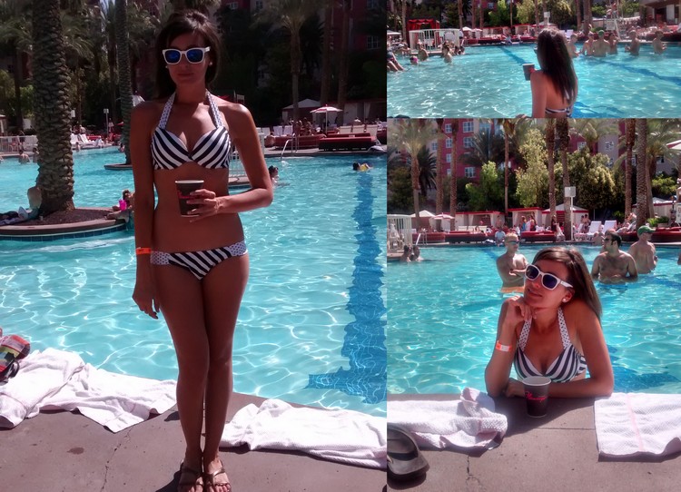 Las que también me seguís a través de Instagram aquí, ya sabéis que he estado unos días disfrutando del sol de las playas del levante español. El caso es que en mi maleta había metido unos cuantos trajes de baño de la temporada pasada pero, como ya os estaréis imaginando, allí me entró el gusanillo de hacerme con alguna que otra propuesta para la nueva estación y aprovechando el tiempo libre entre baño y baño, estuve curioseando el amplio catálogo de bañadores y bikinis de Lightinthebox (una web internacional que distribuye productos en más de 200 países y que seguro todas conocéis a estas alturas), con tan buena suerte que fui a dar con un modelo en concreto de rayas y lunares que precisamente había encargado hace un par de años para estrenarlo en mi periplo por la costa oeste de Estados Unidos con parada obligatoria en las playas de Santa Mónica, Venice y Malibú y que también lucí en las pool parties del Hotel Flamingo durante mi estancia en Las Vegas, como podéis ver en las siguientes imágenes. Pese a estar súper gastado, aún seguía siendo de mis favoritos; por eso, ni me lo pensé dos veces y volví a pedirlo (en una talla menos, eso sí, porque el anterior se me había dado algo de sí). Además, había bajado considerablemente de precio, con respecto de la vez anterior.