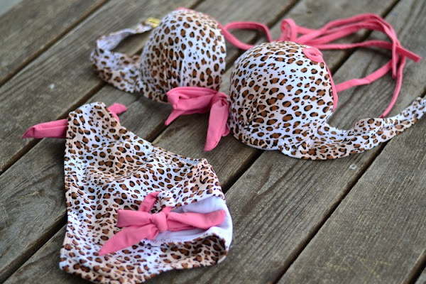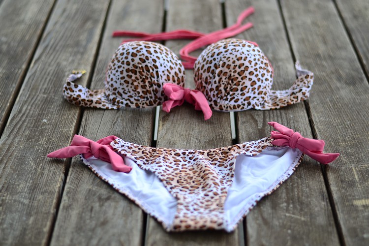 Finalmente, añadí a mi lista este bikini estampado de leopardo en camel y rosa con fondo blanco roto con tirante para atar al cuello (muy práctico). En general, me gusta bastante el animal print en complementos y bikinis (me parece muy sexy). No es el primero que tengo de estas características e imagino que tampoco será el último.