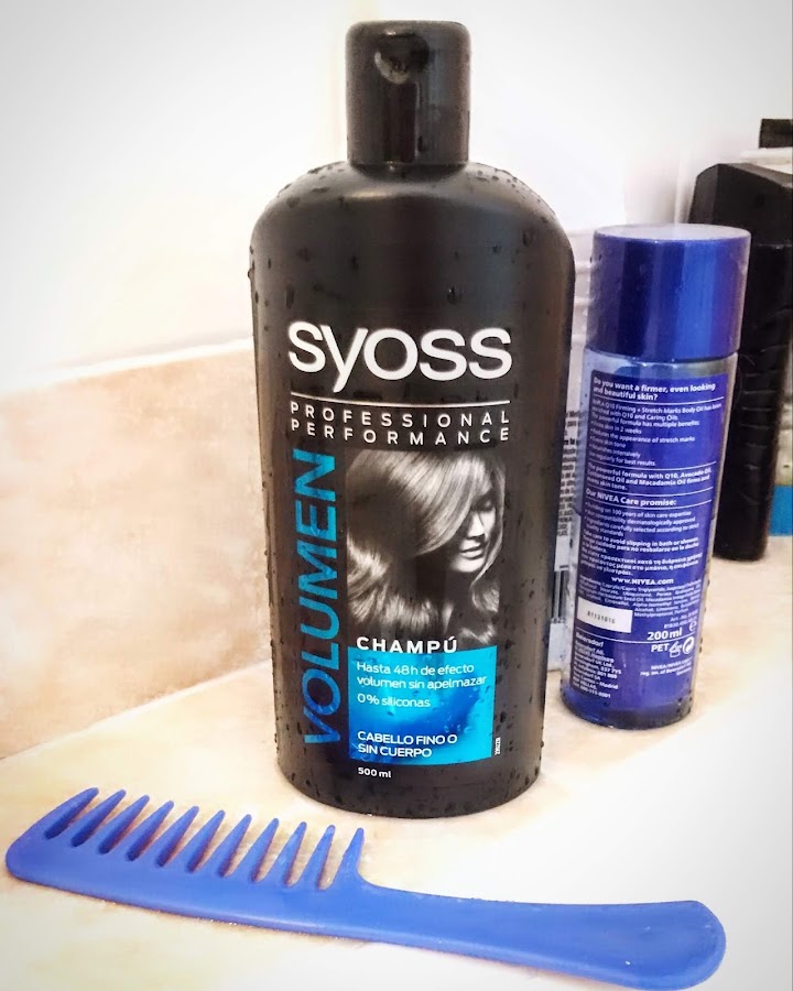 Ahora vayamos a lo que de verdad importa, mi experiencia con este champú, lo 1º decir que mi cabello es fino, liso, largo, y aun llevando el corte a capas, y secándolo boca abajo, nunca consigo volumen, siempre tengo el pelo "aplastao" Así que creo que tengo el prototipo de cabello perfecto para esta gama de Syoss.