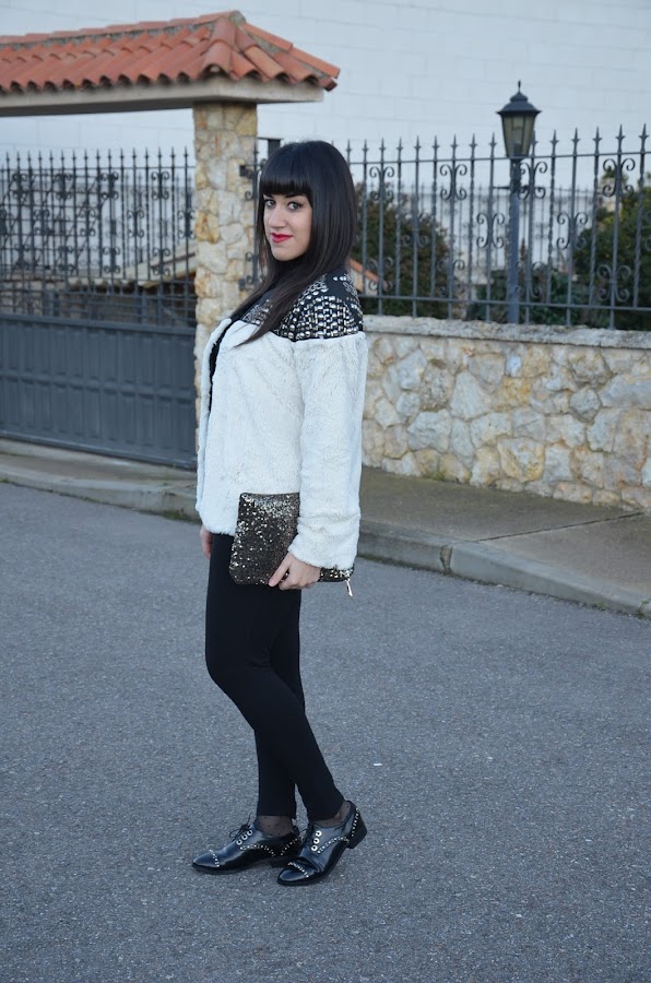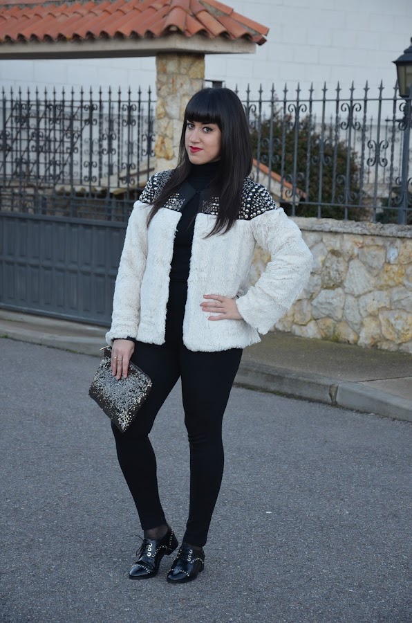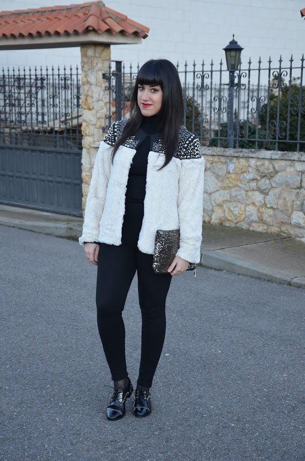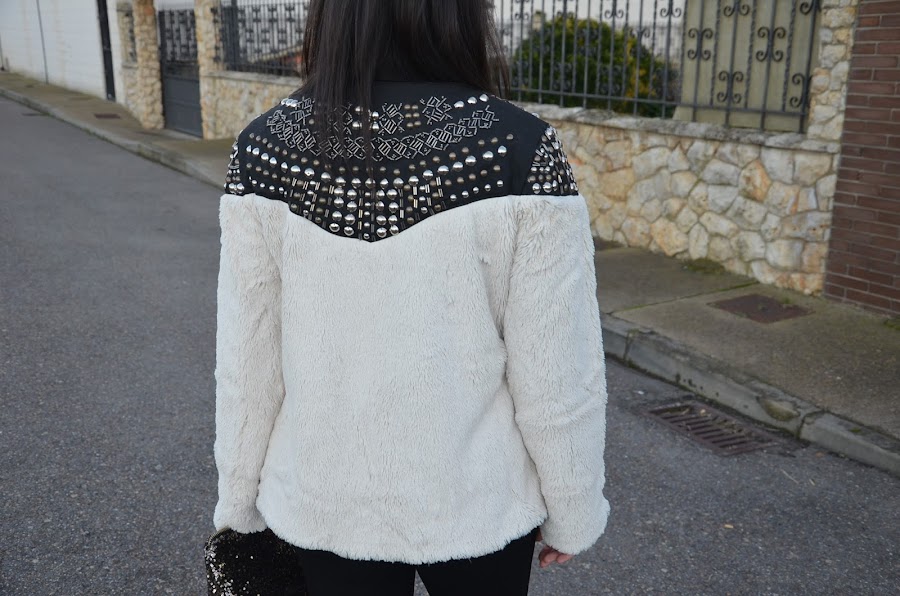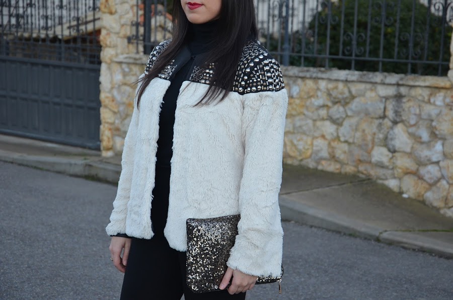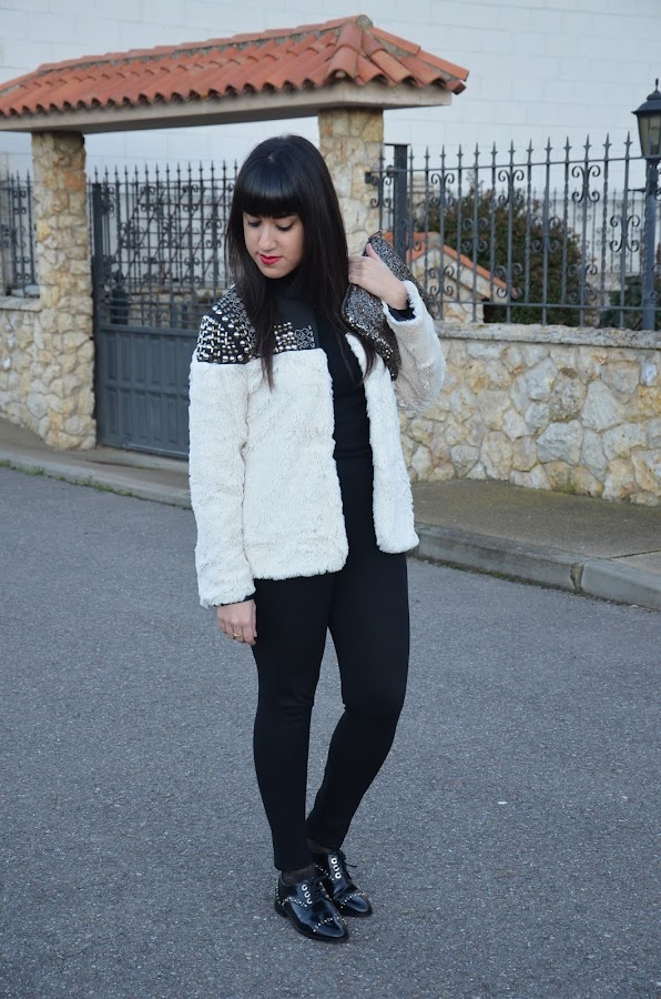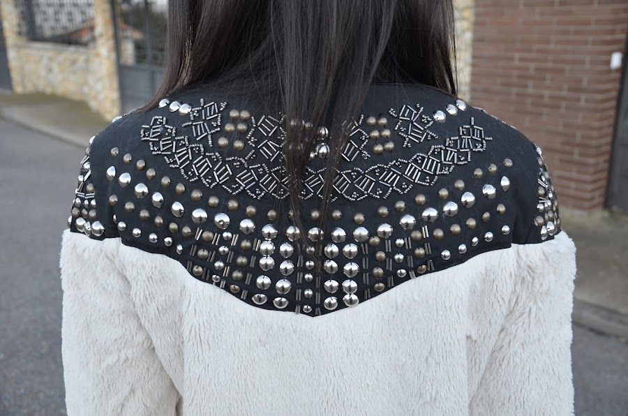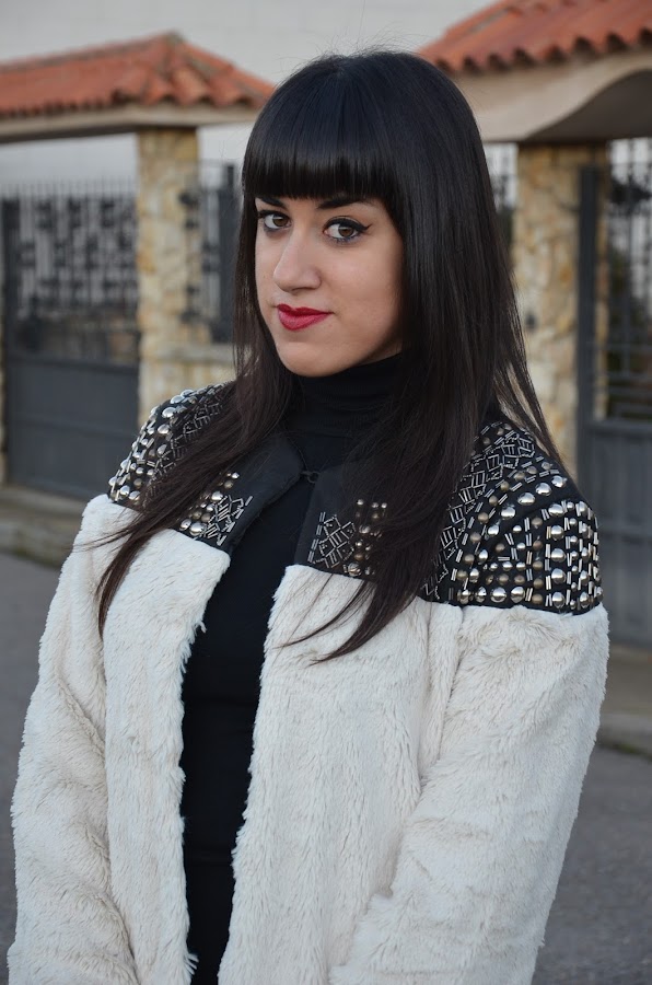 Ya os había comentado que este año los abrigos de pelo sintético son mi perdición y hoy os traigo otro pero esta vez con tachuelas. Es de Choies, la verdad que cuando lo vi en la tienda online me hizo dudar por que me daba la sensación de que iba a ser un poco basto, pero por suerte, nada mas lejos de la realidad, es muy suave y las tachuelas le dan ese toque diferente y único. Yo pedí la talla L.