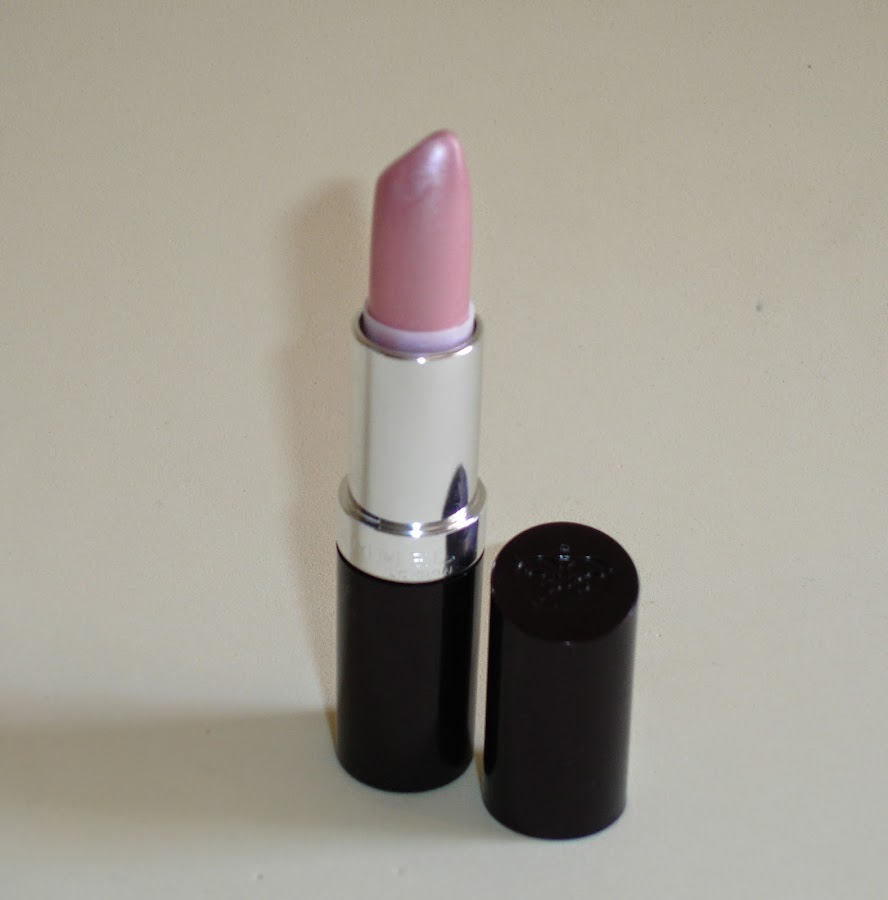 Pues en este caso se trata de un labial de Rimmel London que venía en un set de varios productos que vendían esta navidad en Mercadona, el set era aparentemente de tonos rosas muy monos, pero el lebial resultó ser un rosa muy claro y escarchado, totalmente ochentero y que no me gusta demasiado que digamos. El tono es el 020: