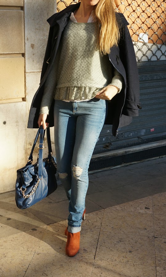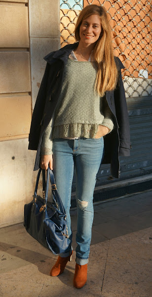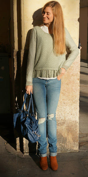 Okay, there’re many things that happen to you for being tall but there’re other things you’d love to experience sometime in your tall life which are difficult to happen. One of those things is the fact of rolling up the bottom of your jeans. It wasn’t one of my goals to find a pair of extreme long jeans but ripped ones. I usually invest in non-risky clothes so that I can endlessly pair them. When I looked into my closet analyzing the short variety of jeans there’s in it, I found them all so “correct” and boring. It’s been long since I wanted something more risky or different, so a couple of weeks ago I saw a beautiful pair of ripped jeans in Long Tall Sally.com. Lucky me, they were on sale, so I took the risk and ordered them. I had never bought tall jeans before, and I admit I was a bit sceptical about the fitting and the size but which was my surprise when I received them at home and tried them on... Is that my bum?? Wow! I’m so happy with my new bottom on that pair of girlfriend jeans! Seriously, perfect fit and extremely long. I wore them for an informal date with a boho-romantic jumper from a local brand whose tops have longer sleeves than the average. Hope you like it as much as I like my new bum hehe!