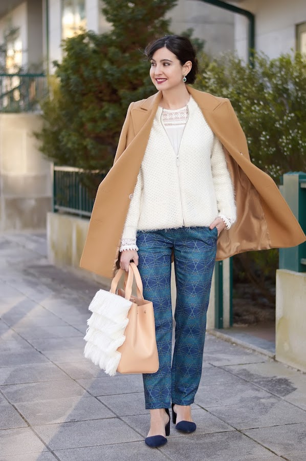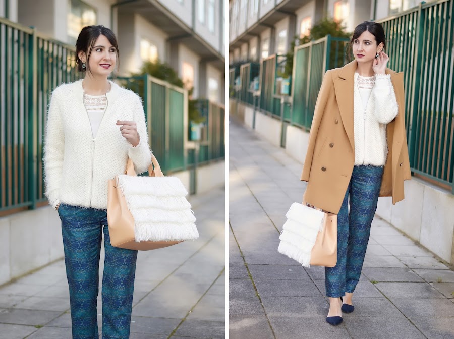 Abrigo: Asos / Pantalones: Adolfo Domínguez / Zapatos: Stradivarius / Bolso: Uterqüe / Camisa: Mango / Chaqueta: Bershka