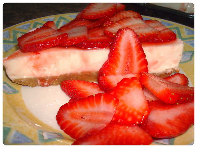 ... y es que quiero enseñarte mi postre favorito, que como has visto en el título es la tarta de queso y fresas.