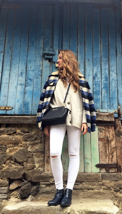 Un look en blancos y azules, como no hubo que sacar los botines de agua, estos fueron un chollo de rebajas y son una monada! Este año están muy de moda los pantalones blancos, al principio no me acababan de convencer pero ahora me han conquistado.