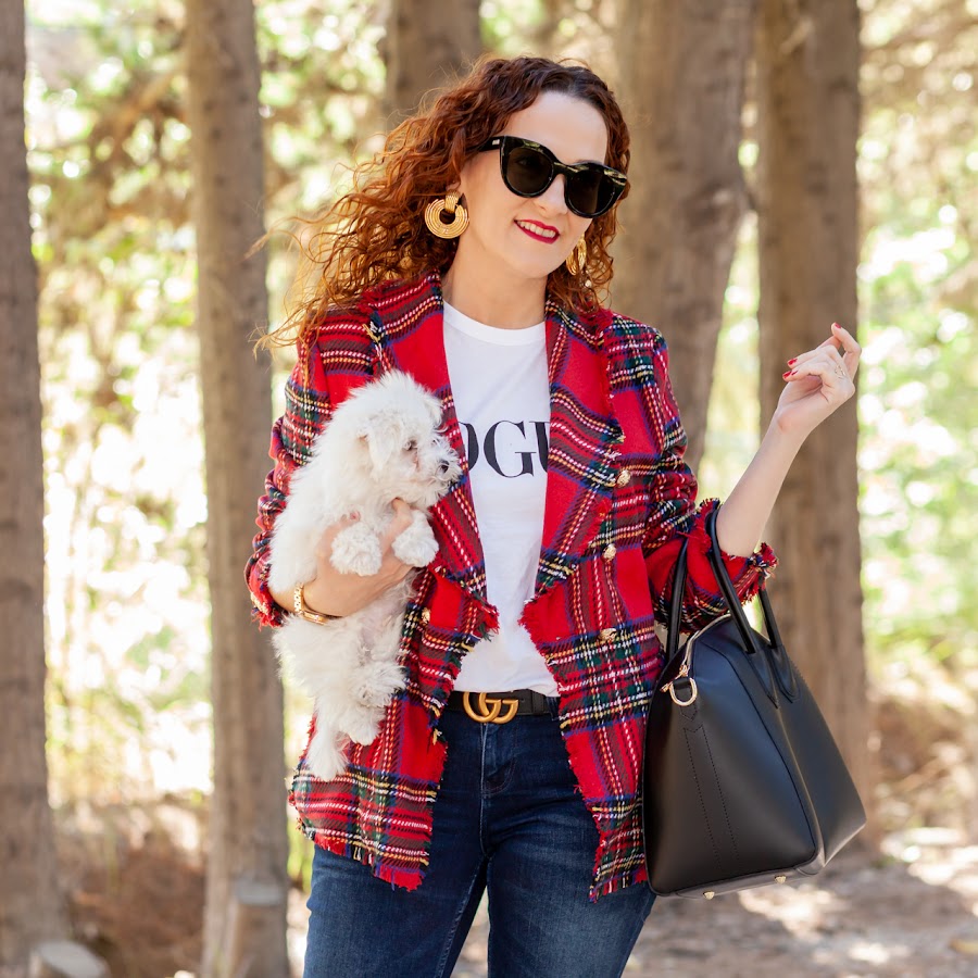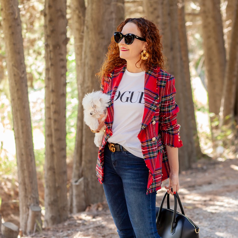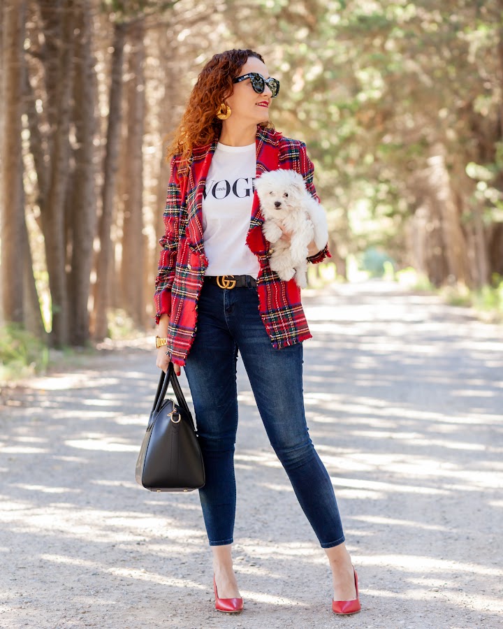 Esta temporada estoy encantada con las tendencias que vienen en moda, sobre todo con los estampados. Tanto el animal print como los cuadros me chiflan, es más los que me seguís desde el principio sabéis que en mayor o menor medida siempre los he llevado. En cuanto al estampado de cuadros, el tartan en rojo es uno de mis preferidos, aun recuerdo cuando tenía 15 años y veía a los punkies de mi ciudad como los llevaban en los pantalones ¡me encantaban!. Por eso cuando veo una prenda con este print es difícil que me resista, como esta preciosidad de blazer de paño de Shein que llevo hoy.