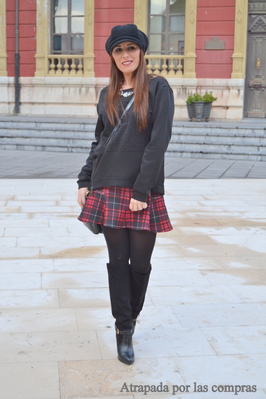 Y para ello he combinado la famosa falda tartán de neopreno, en este caso de Bershka, la tengo desde hace un montón de tiempo pero no había tenido oportunidad de enseñárosla, con una sudadera oversize de cremalleras de neopreno de Stradivarius. Una combinación quizá poco original, falda tartán + sudadera, pero que personalmente me encanta y con la que me siento super cómoda.