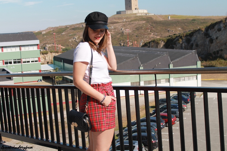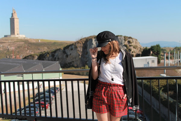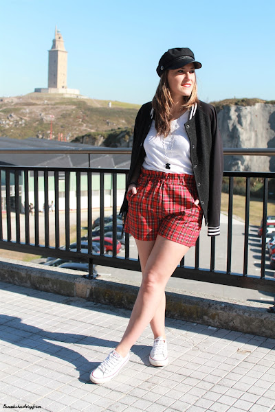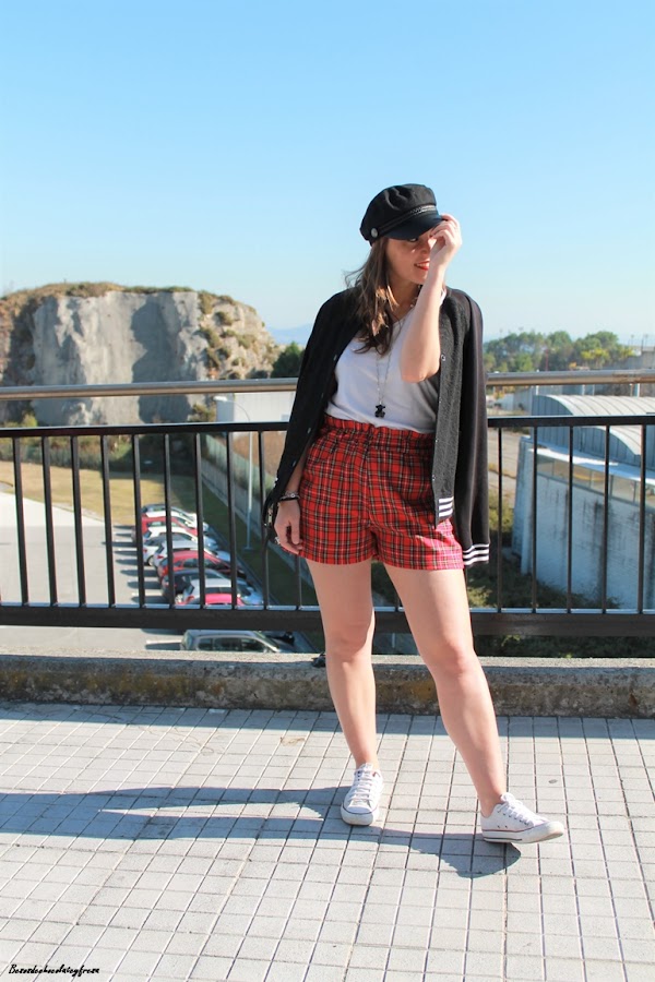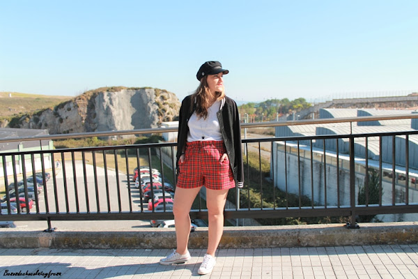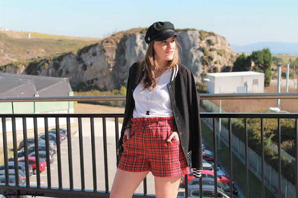 En esta ocasión llevo mis nuevos shorts con este estampado en color rojo como claro protagonista. Le di un rollo casual y sport con sneakers, camiseta básica en blanco, bomber, gorra marinera y bolso en negro.