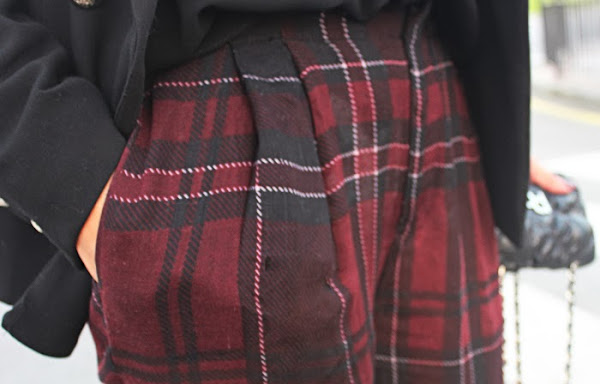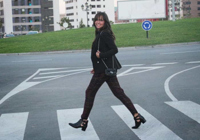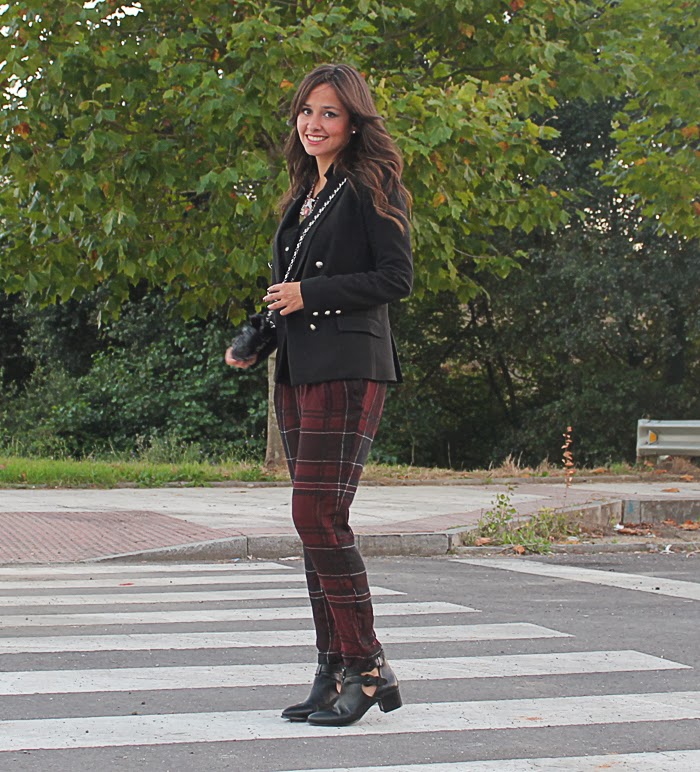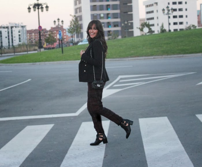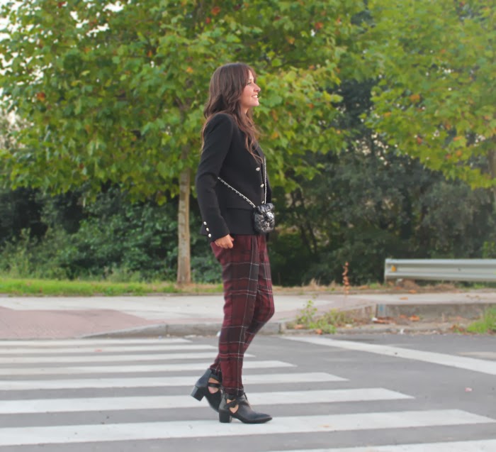Hoy os enseño dos de las tendencias de esta temporada; por un lado, como el título del post indica, el pantalón con cuadros tartán que acabaremos cansados de tanto cuadrito esta temporada, y luego mis ya inseparables botines cut-out que últimamente no apeo. Para combinarlo no me complique mucho y utilice prendas negras, nuevamente tirando de fondo de armario. ¿os gusta el resultado?