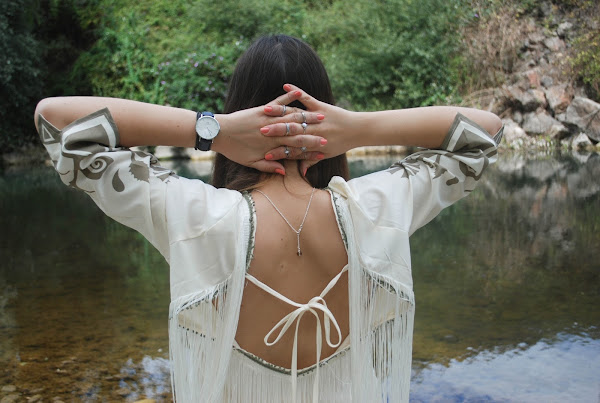 Decidí acompañarlo de tacones y mi reloj favorito de Daniel Wellington. Pero para bajar hasta el sitio donde hice las fotos me puse unas cangrejeras porque no era plan romperme un pie, así que también hice fotos con ellas.