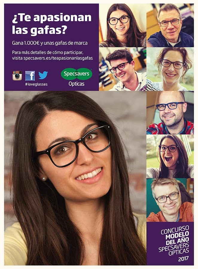 SPECSAVERS busca de nuevo a los gafitas más seductores, gente a la que llevar gafas le siente genial. No solo buscan estudiantes o gente joven La competición está abierta a toda la familia, hombres, mujeres - padres y ¡abuelos también!