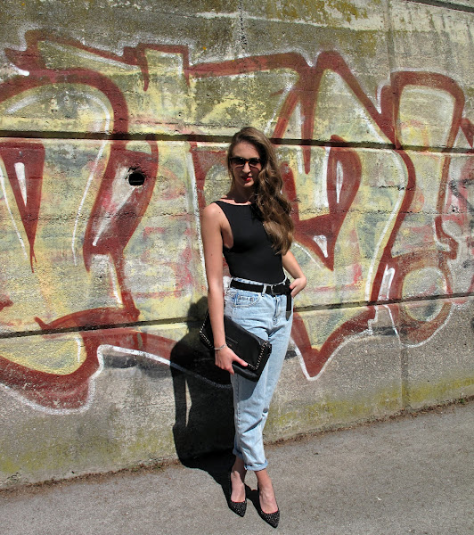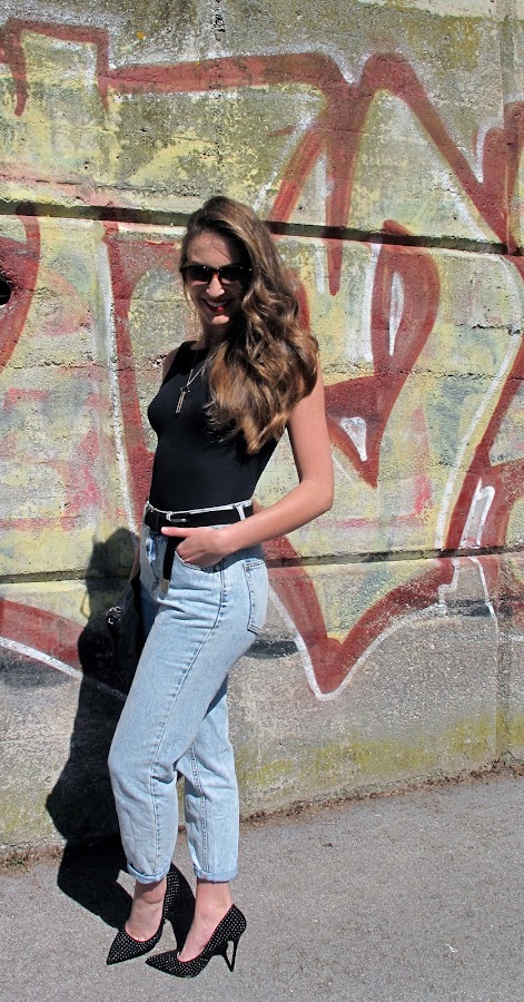 Para esta ocasión combiné body con un vaquero oversize y perfecto de cuero y para darle un look mas lady unos stilettos