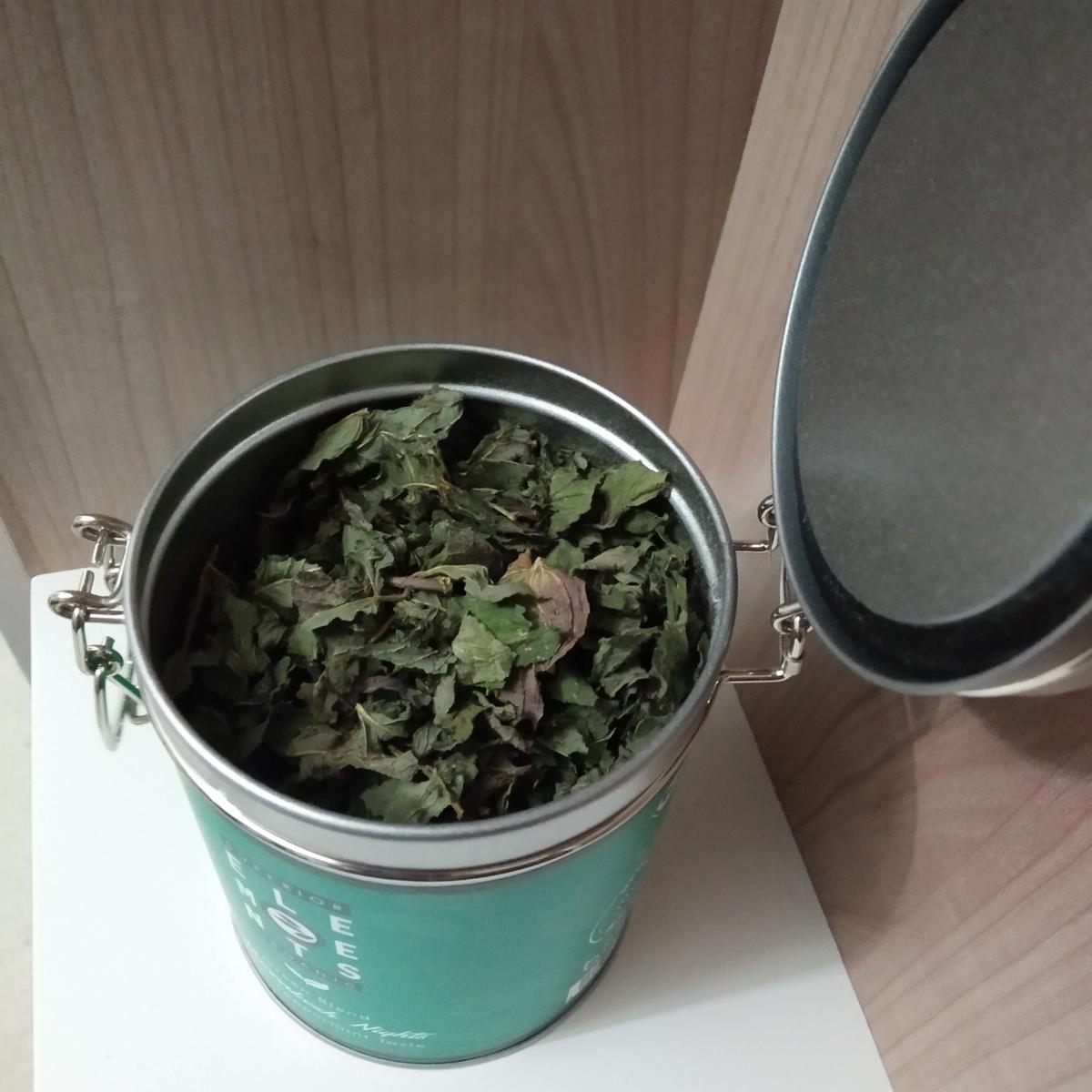 Cuando abrimos el bote y acercamos la nariz, nos viene una ola mentolada que, nos despeja las narices. Podemos ver que es de buena calidad, las hojas están casi enteras y huele como si estuvieras por un campo de menta.