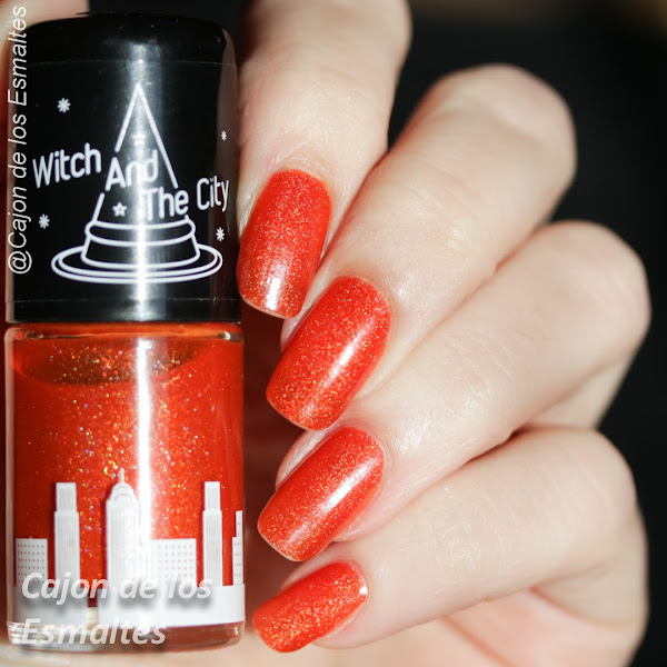 Pero me voy por las ramas, volviendo a las uñas el naranja es un jelly holográfico de efecto disperso bastante sutil que forma parte de la colección Witch and the City (Pumpkin soup) que sacaron el año pasado con ocasión de Halloween. Les dejo algunos enlaces si quieren chusmear swatches de otra blogger o ver en ebay la tienda de etude house: