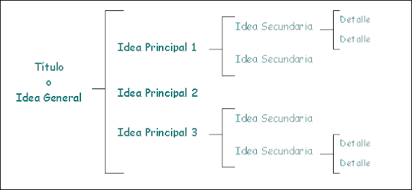 Divide el tema en tres o cuatro apartados que recojan varias ideas principales y que de ellas cuelguen las secundarias.