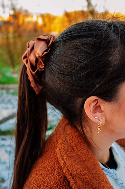Coat: Dresslily (Same here) // Belt: Dresslily (Same here) // Scrunchie: Dresslily (Same here) // Earrings: Dresslily (Same here) // Sweatshirt: H&M // Jeans: Bershka // Sneakers: Vans (local store) // Phone case: Aliexpress // Necklace: Gifted
