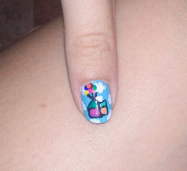 ¿Sabéis de que película se trata? es UP :) He tenido que poner la foto daleada para que se vea bien el dedo pulgar, pero ahora os voy a poner la manicura por partes: