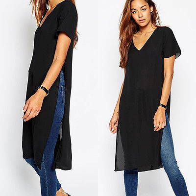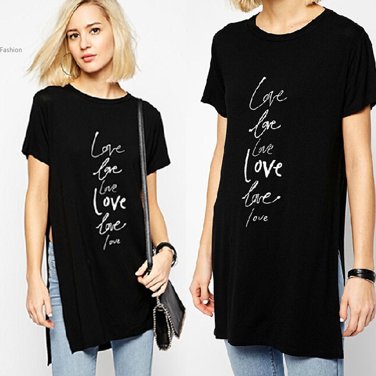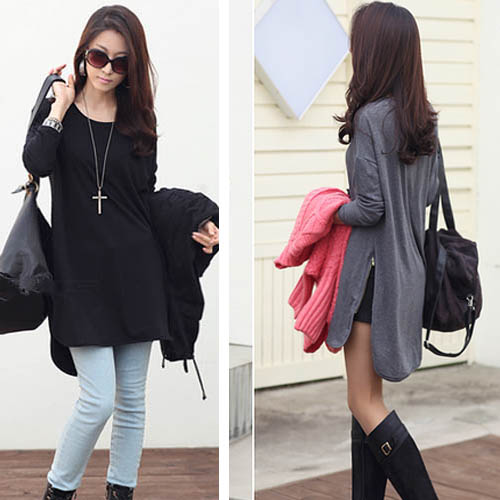 Cuando decimos remeras largas, hablamos de remeras super largas, casi confundidas con vestidos.