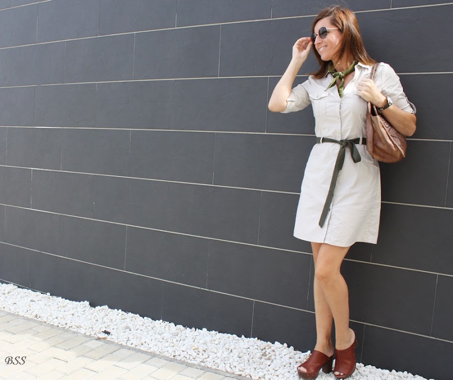 Hoy llevo este nuevo estilo de moda en una propuesta con un vestido camisero dándole un toque desenfadado y casual.