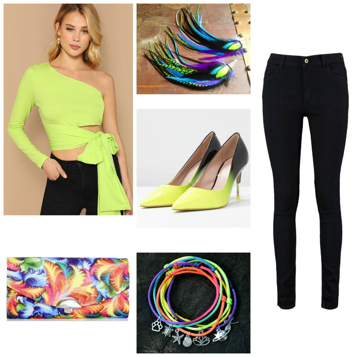 En la tendencia neón también favorecen mucho los complementos y ropa con estampados multicolor. Además de ser muy originales, quedan bien a todo el mundo. Los colores de la tendencia neón se pueden combinar con tonos neutros, caquis, negro y blanco. La combinación con este último color es de las que más me gustan, ya que en caso de estar morena, favorece muchísimo llevar los tonos neón con blanco.