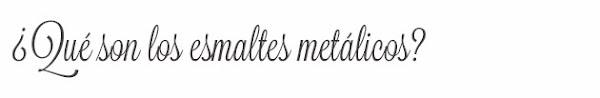 Como siempre, en este Reto os explicamos en qué consiste el acabado del esmalte en cuestión; los esmaltes metálicos se caracterizan por tener pequeñas partículas que hacen que reflejen de manera metálica. Es un poco complicado explicar lo que es metálico, pero creo que todas podemos hacernos una idea mental.