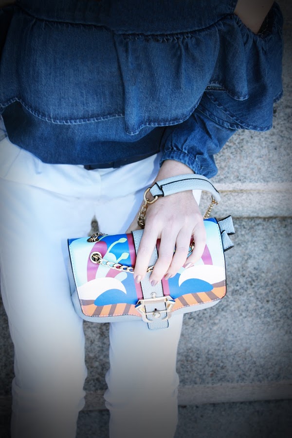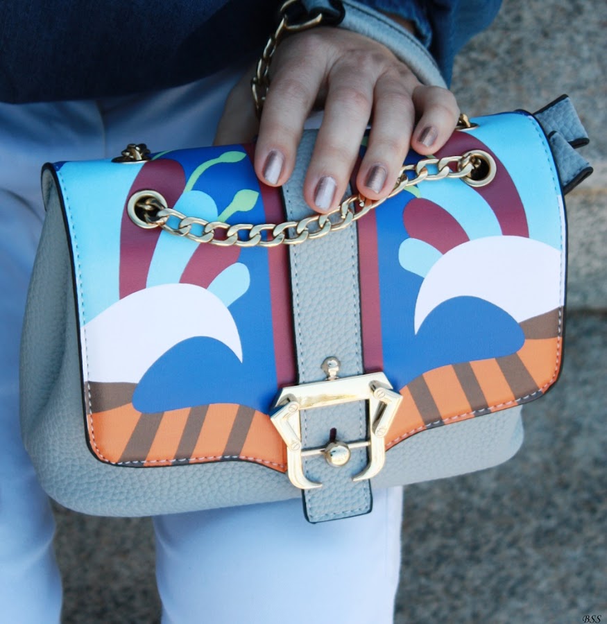 El toque más chic del look lo aporta sin duda este fantástico bolso con un estampado super original que me encanta.