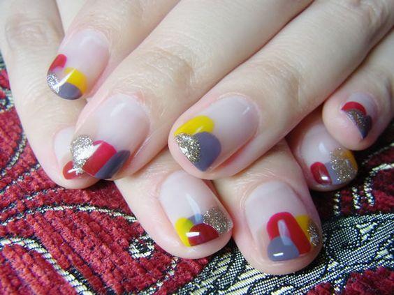Uñas con contrastes, preferentemente base nude o incluso transparente con toques de color en forma de figuras geométricas, uñas francesa o dibujos 3D.