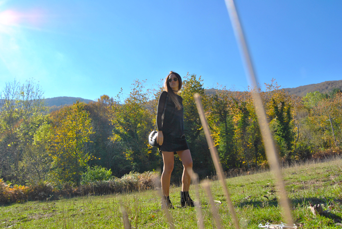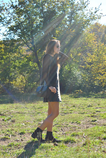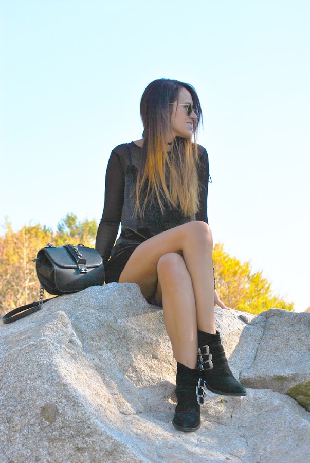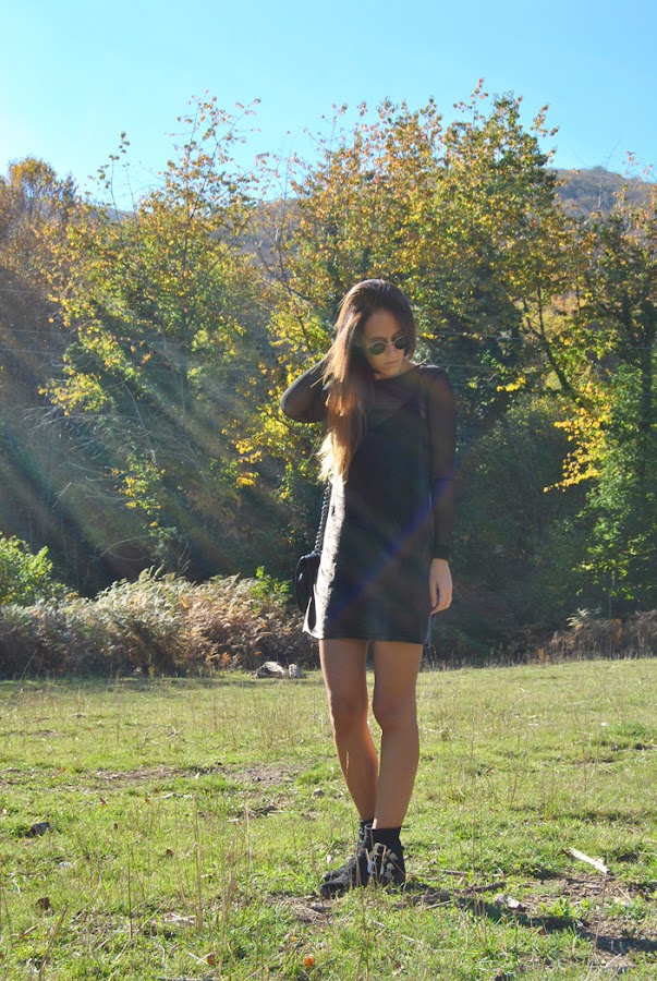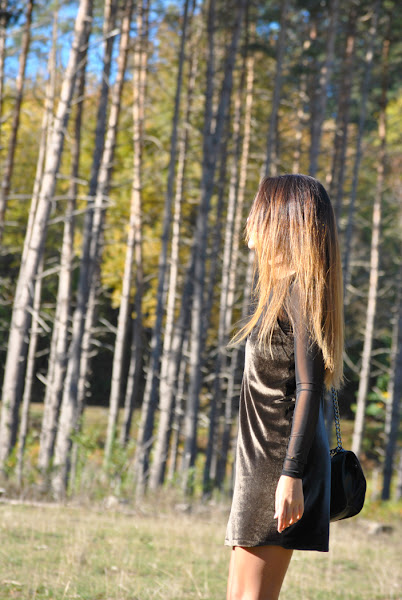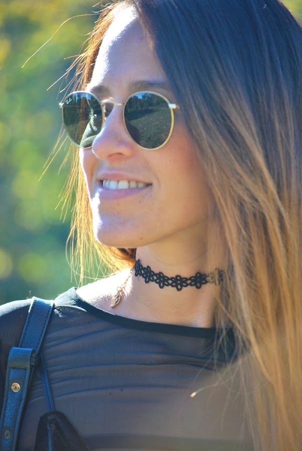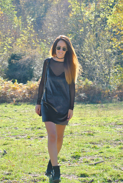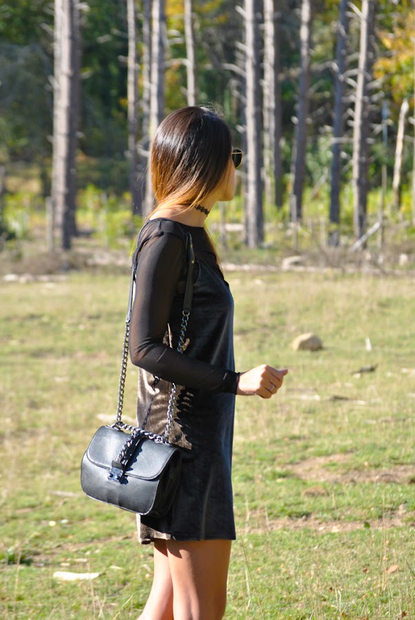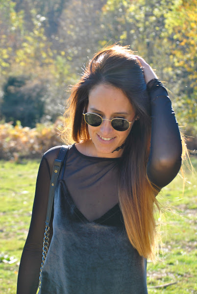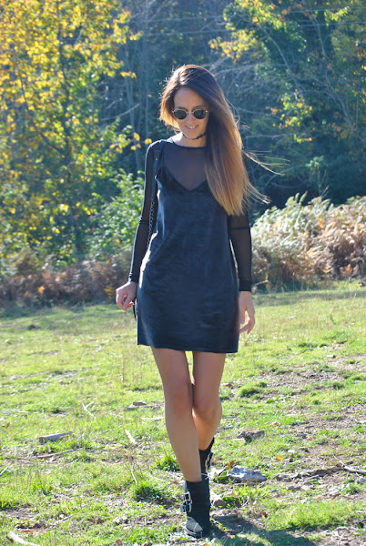 ¡Buenas noches a tod@s! En el post de hoy os traigo un outfit otoñal que reúne varias de las tendencias de esta temporada. El look está compuesto por un mini vestido de terciopelo verde superpuesto sobre una camiseta de tul negra y lleva como complemento el chocker, el accesorio indispensable del momento. Como sabéis este año están mas de moda que nunca los noventa así que espero que os sirva de inspiración.
