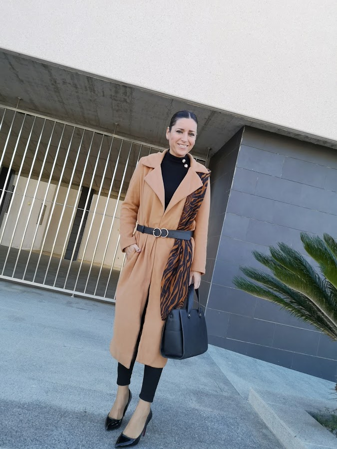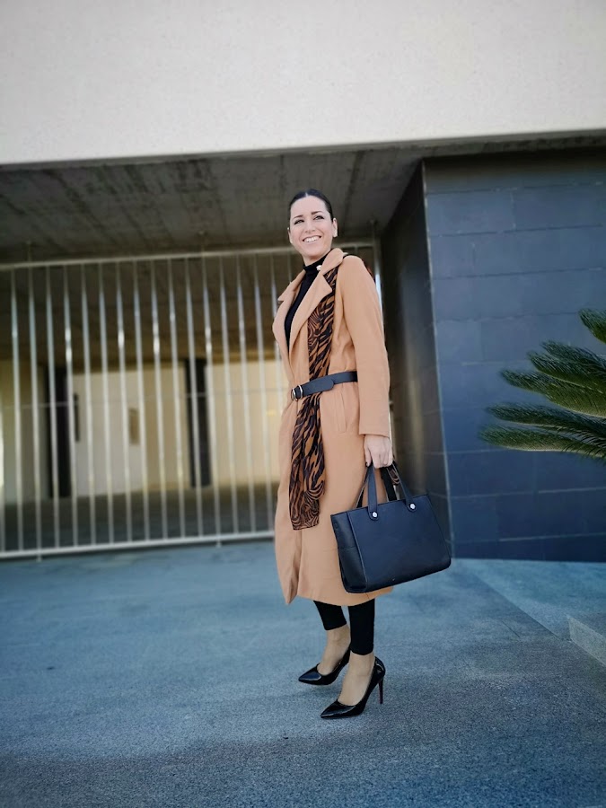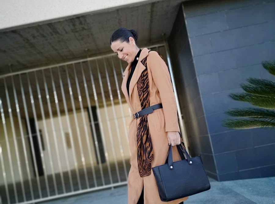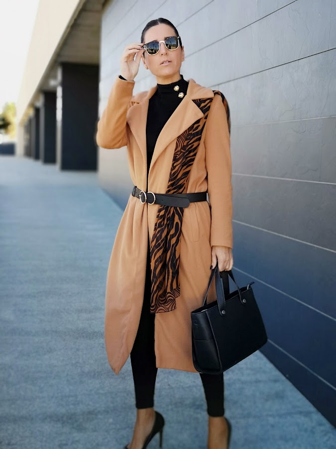 El pasado invierno ya lo pudisteis ver en un total white que me encanta AQUI. Esta temporada he combinado este must have en un total black dando un toque print al look con un pañuelo XXL que lo hace más sofisticado y elegante.