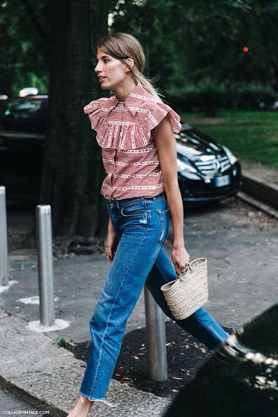Pero como siempre donde mejor se aprecia esta tendencia es como siempre en la calle y es por lo que he hecho una recopilación de varias fotos que fijo que nos animan a hacernos con uno de estos bolso este verano.....