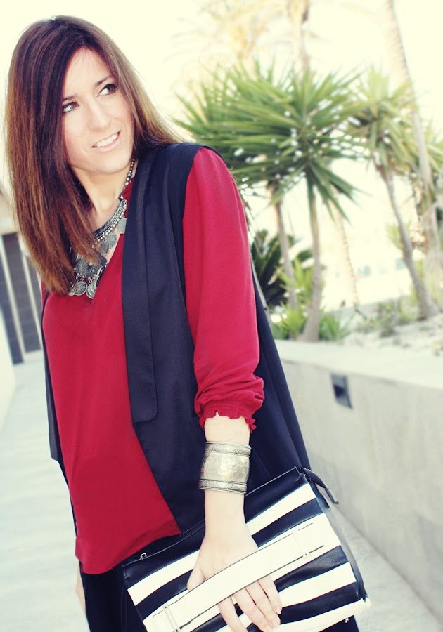 Mi apuesta de hoy es muy sencilla pero me encanta, restando sobriedad a los outfits con una mezcla entre complementos boho y unas rayas que no pasan desapercibidas.